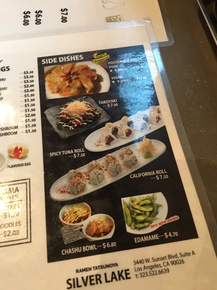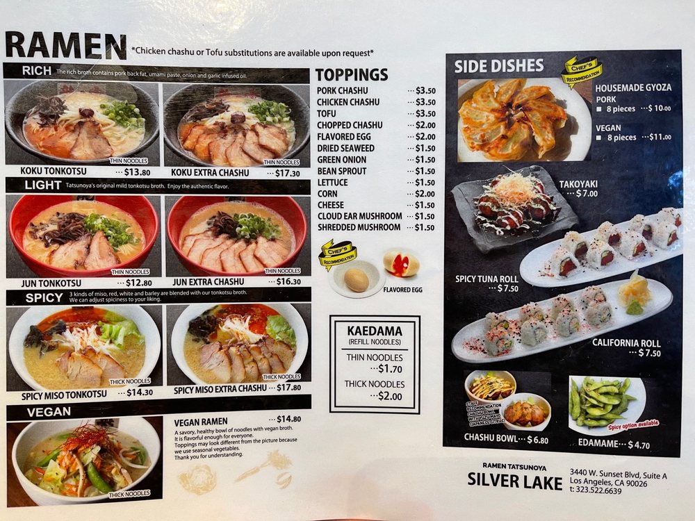 Ramen Tatsunoya in Los Angeles offers a cozy and trendy dining experience with a variety of ramen options and tasty appetizers like gyoza. Customers rave about the consistent and flavorful Spicy Ramen, as well as the vegan-friendly soy broth. The edamame is also a standout, with a spicy twist that sets it apart. The restaurant provides a mix of indoor and outdoor seating, making it a great choice for any weather. The attentive staff and quick service enhance the overall dining experience. Don't miss out on the delicious broth and juicy chasu. Overall, Ramen Tatsunoya is a top choice for a comforting and satisfying meal in the Silver Lake area.